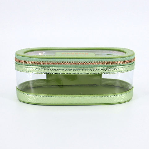 Outdoor Mini Water Proof Light pink Leather Makeup Bag Rectangle Shiny Mini clear Transparent Pvc Daily Travel Cosmetic Bag