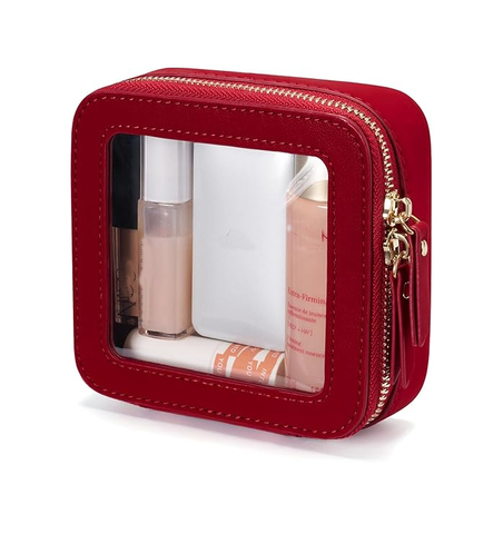 Leather Clear Makeup Bag Waterproof Faux Leather Case Travel Makeup Pouch with Zipper Car Essentials for Women Gift